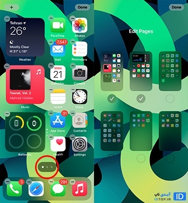 شرکت اپل برای استفاده هرچه راحت از ویژگی App Library یک قابلیت دیگر هم به سیستم عامل خود اضافه کرده است، کاربران در iOS 14 می توانند با لمس طولانی در هوم اسکرین یا انتخاب گزینه Edit Home Screen و انتخاب بخشی که صفحات سیستم عامل را نمایش می دهد، وارد بخش جدیدی به نام Edit Pages شوند. در این بخش می توان صفحات اضافی را حذف کرد تا سریع تر به صفحه اپ لایبری برسید، به عنوان مثال اپ هایی که هر روز به آن ها نیاز دارید در 1 یا 2 صفحه جا می شوند، پس نیازی به 5 صفحه ندارید، صفحه های اضافی را حذف کرده و زمانی که به سایر اپلیکیشن ها نیاز دارید با اسکرول به آخرین صفحه آیفون وارد بخش App Library شده و وارد اپلیکیشن مورد نظر می شوید.