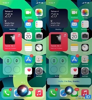 در نسخه قبلی iOS بخش سیری مانند یک نرم افزار تمام بخش صفحه نمایش را می پوشاند، اگر کمی با دستیار صوتی اپل کار کرده اید قطعا متوجه بلااستفاده بودن باز شدن سیری به شکل یک نرم افزار شده اید، اپل در این بخش مکالمه شما و سیری را به صورت متنی نمایش می داد که تقریبا فایده ای ندارد.