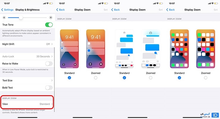 همانطور که می دانید آیفون 12 در 4 مدل و 3 سایز صفحه نمایش عرضه می شود، همین امر سبب شده است که در آیفون کوچک تر، آیکون ها و محیط سیستم عامل کمی کوچک شود و کار با آن کمی دشوار شود، همین امر سبب شده است که اپل در iOS 14 ویژگی به نام Display Zoom را اضافه کند. کاربران با مراجعه به بخش Display & Brightness در تنظیمات و انتخاب گزینه View در انتهای صفحه، دو مدل Standard و Zoomed را انتخاب کنند، این ویژگی در تمامی آیفون هایی که به iOS 14 آپدیت شده اند در دسترس می باشد. کاربرد دیگر این ویژگی برای افرادیست که چشم های ضعیف دارند و خواندن نوشته های ریز برای آنها دشوار است، Display Zoom کار با آیفون های کوچک را بسیار راحت تر از گذشته خواهد کرد.