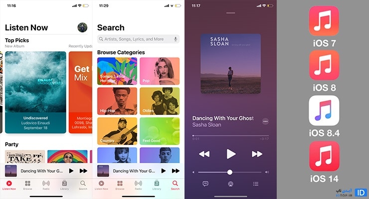 اگه کاربر قدیمی اپل باشید حتما به یاد دارید که آیکون Apple Music تا پیش از آپدیت iOS 8.4 قرمز رنگ بود، اما اپل با عرضه این اپدیت طراحی اپل موزیک را تغییر داد و آیکون آن را به رنگ سفید تغییر داد، آیکون سفید رنگ اپل موزیک از iOS 8.4 تا iOS 13.7 همراه کاربران سیستم عامل اپل بود اما در نسخه جدید سیستم عامل این شرکت یعنی iOS 14 آیکون اپل موزیک دوباره قرمز رنگ شده است، رنگی که خیلی زیباست و حس بهتری به علاقمندان موسیقی القاء می کند. تغییرات اپل موزیک تنها مختص به ظاهر آیکون آن نیست و داخل اپلیکیشن نیز تغییرات بسیاری مشاهده می شود، ظاهر کلی اپل موزیک بهبود یافته و بخش های جدیدی مثل Listen Now به آن اضافه شده، همچنین بخش جستجو موزیک بسیار زیباتر و کاربردی تر شده است.