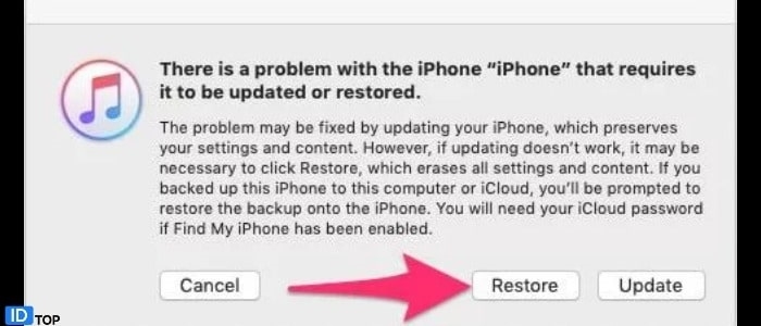 3. هنگامی که iTunes را باز کردید در گوشه بالا سمت چپ آیکونی مربوط به گوشی آیفون دیده می شود که باید بر روی آن کلیک کنید. در صفحه ای که باز می شود کلید Shift چپ در ویندوز یا کلید Option چپ در مک را فشار داده و بر روی گزینه Restore iPhone کلیک نمایید و صبوری کنید تا به اتمام برسد.