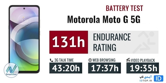 منبع انرژی این گوشی یک باتری بزرگ 5000 میلی آمپر ساعتی است، این گوشی یکی از بالاترین امتیازات را با عدد 131 ساعت استقامت نگه داری شارژ در اختیار دارد. Moto G 5G می تواند تا 43 ساعت تماس 3G، تا 17 ساعت وبگردی و تا 19 ساعت پخش ویدئو به شما شارژرسانی کند. فست شارژ همراه این گوشی یک شارژر 20 واتی است که شارژ کامل Moto G 5G با آن تقریبا 2 ساعت و 20 دقیقه زمان نیاز دارد که عدد ضعیفی محسوب می شود.
